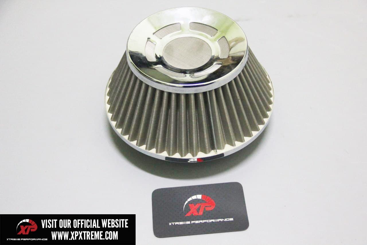 Universal Open Pod 3 inch Air Filter Features: - Strong galvanised steel mesh - Epoxy coating - Deep pleats/3D precision weaving technology - Extreme velocity stack - High flow filter element - High grip design for perfect fitment - Secure urethane base - Easily washed with soap and water - Best used on highly modified or turbocharged vehicles where higher air flow can be optained