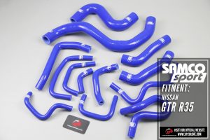 Add more style to your engine bay with this 14-piece silicone radiator hose kit for the Nissan GTR R35. The 5ply silicone radiator hoses replace your factory black rubber components. Not only do these add a better look to your engine bay, they also last for the life of your vehicle. The factory rubber hoses can deteriorate and crack over time. Silicone hoses are also more resistant to the high engine temperatures your turbocharged motor creates. The silicone hoses are designed as a direct replacement to fit on the stock or similar aftermarket radiators. Each hose has a small MFR logo placed on it.