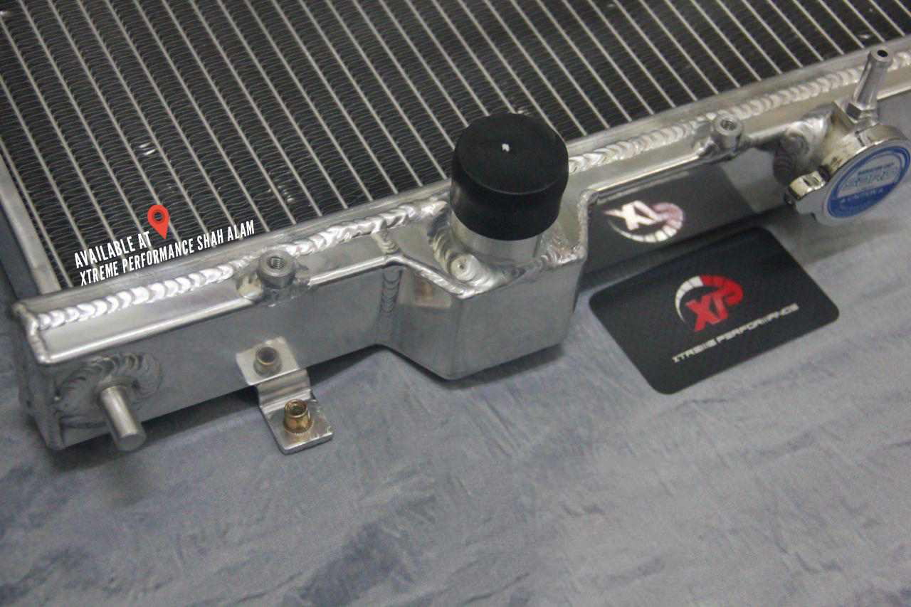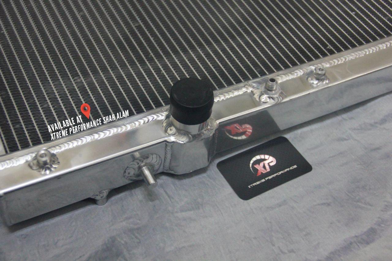 This aluminium radiator is designed to provide maximum cooling efficiency to prevent premature engine failure. Its light-weight, and high-heat transferring aluminium features a tube and fin design that, dramatically increases surface area that enables the heat to dissipate more efficiently. This Aluminium Radiator is at least 20 – 40% more efficient than stock ones. Most importantly, it has a much higher capacity for coolant than stock ones, which means that your cooling system will be more efficient and will be more resistant to temperature surges in racing applications.
