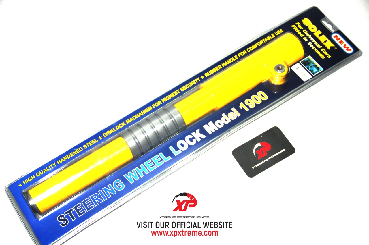 Product details of [100% ORIGINAL] SOLEX PREMIUM 1900 STEERING LOCK Authentic Solex product High quality hardened steel Disk lock mechanism for highest security Rubber handle for comfortable use Restricts steering wheel movement with the lock fitted 3 keys Important notes: Only suitable for normal size steering wheel handle. Maximum diameter of steering wheel handle is 29mm. It cannot be fit if exceeded 33mm.
